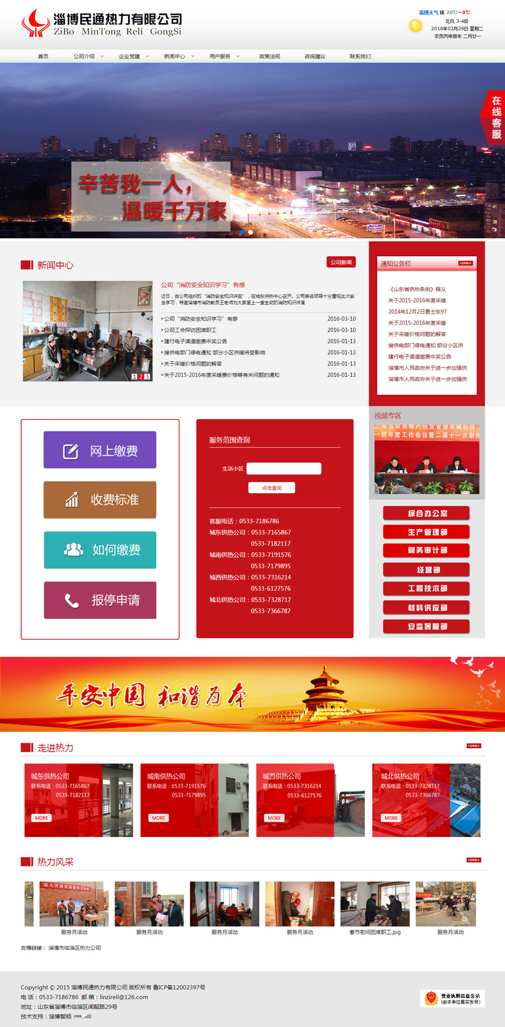 公司現有綜合辦公室、生產(chǎn)管理部、財務(wù)審計部、經(jīng)營(yíng)部、工程技術(shù)部、材料供應部、安監客服部等七個(gè)職能部門(mén)。根據熱源分布和熱源特點(diǎn)現下設城東供熱公司、城南供熱公司、城西供熱公司、城北供熱公司等四個(gè)供熱公司。公司現有職工174名,其中在編事業(yè)人員54人,管理人員6人,專(zhuān)業(yè)技術(shù)人員21人,工勤人員27人。