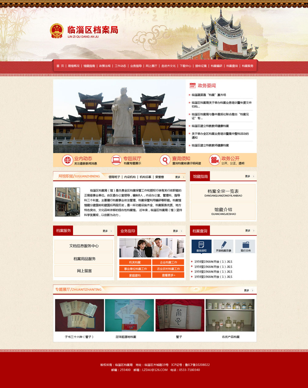 臨淄區檔案局與檔案館為一個(gè)機構,兩塊牌子,檔案館是縣級綜合檔案館。其主要職責是:一、貫徹、落實(shí)、實(shí)施黨和國家關(guān)于檔案工作的方針政策和法律法規;制定本區檔案工作的計劃、發(fā)展規劃和規章制度;組織指導監督檢查協(xié)調全區黨政機關(guān)、群眾團體、企事業(yè)單位的檔案工作;二、集中統一管理全區黨政機關(guān)的重要檔案資料、保守黨和國家的秘密,維護檔案的完整,確保檔案資料的安全;三、負責接受征集、整理、保管全區黨政機關(guān)的檔案資料,推進(jìn)檔案工作的科學(xué)化管理和現代化建設,做好為社會(huì )的提供利用工作;四、組織檔案專(zhuān)業(yè)干部和檔案工作人員的培訓工作,負責檔案專(zhuān)業(yè)技術(shù)職務(wù)評聘的有關(guān)工作;五、完成區委、區政府交辦的有關(guān)事宜。